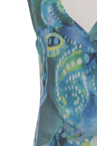 | Details | Rüschen, Chiffon, ärmellos, Wickeloptik, V-Ausschnitt, Motivprint |