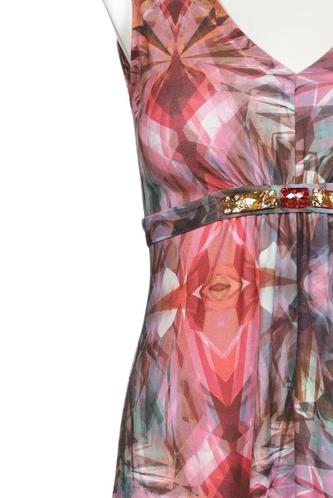 | Details | Jersey, ärmellos, Bindegürtel, V-Ausschnitt, Motivprint |