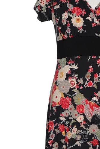 | Details | Jersey, Kurzarm, Bindegürtel, V-Ausschnitt, Floral |