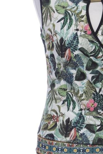| Details | Jersey, ärmellos, V-Ausschnitt, Floral |