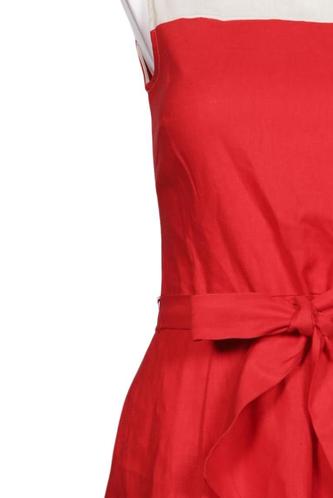 | Details | ärmellos, Bindegürtel, Rundhals, Reißverschluss/Knöpfe hinten, Einfarbig |