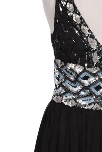 | Details | Pailletten, Tüll, ärmellos, V-Ausschnitt, Reißverschluss/Knöpfe hinten, Einfarbig |