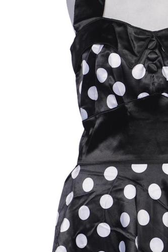 | Details | Satin, ärmellos, Bindegürtel, V-Ausschnitt, Reißverschluss/Knöpfe hinten, Punkte |