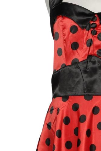 | Details | Satin, ärmellos, V-Ausschnitt, Reißverschluss/Knöpfe hinten, Punkte |