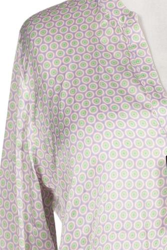 | Details | Satin, Langarm, Knopfleiste, V-Ausschnitt, Punkte |