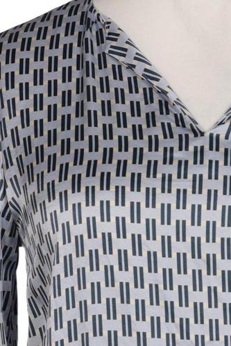 | Details | Satin, Langarm, V-Ausschnitt, verschlusslos, Motivprint |