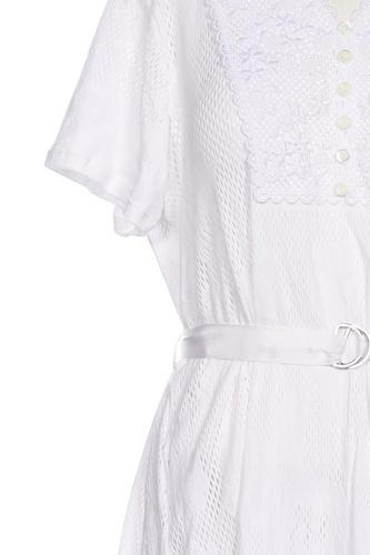 | Details | Jersey, Stickerei, Kurzarm, Bindegürtel, V-Ausschnitt, Front Knopfleiste, Einfarbig |
