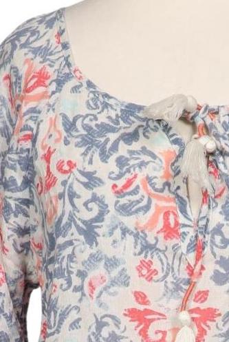 | Details | Fransen, Schnürung, Dreiviertelarm, V-Ausschnitt, verschlusslos, Floral |
