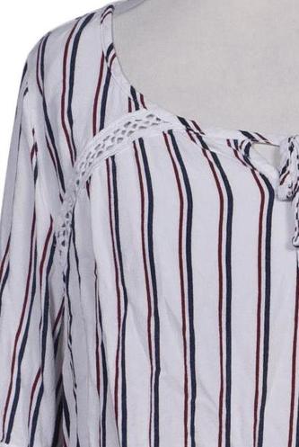 | Details | Schnürung, Spitze, Lochstickerei, Langarm, V-Ausschnitt, verschlusslos, Streifen |