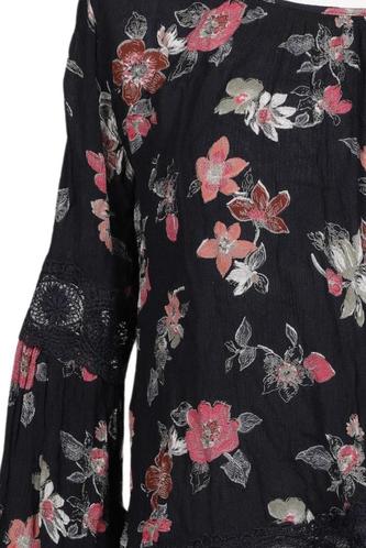 | Details | Chiffon, Dreiviertelarm, Rundhals, verschlusslos, Floral |