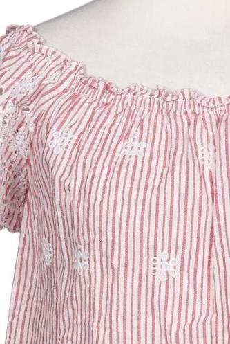| Details | Stickerei, Spitze, Lochstickerei, Kurzarm, V-Ausschnitt, verschlusslos, Streifen |