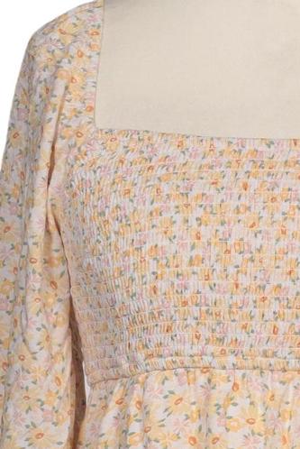 | Details | Jersey, Rüschen, Dreiviertelarm, V-Ausschnitt, Gummizug/Tunnelzug, Floral |