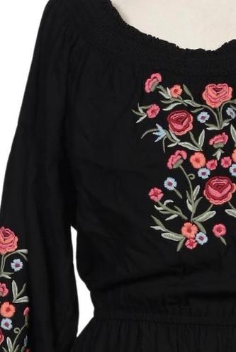 | Details | Stickerei, Langarm, V-Ausschnitt, Floral |