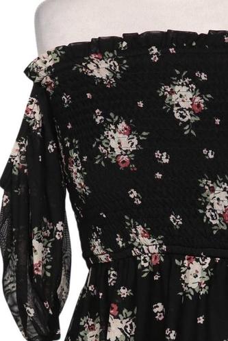 | Details | Rüschen, Chiffon, Kurzarm, V-Ausschnitt, Floral |