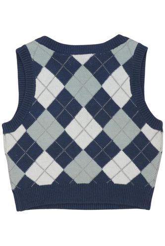 | Details | Grobstrick, ärmellos, V-Ausschnitt, Rauten |