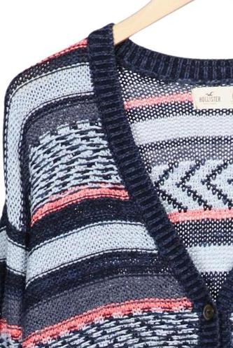 | Details | Grobstrick, Langarm, Front Knopfleiste, Streifen |