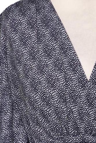 | Details | Jersey, Dreiviertelarm, Bindegürtel, V-Ausschnitt, verschlusslos, Gummizug/Tunnelzug, Motivprint |