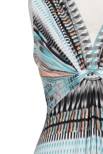 | Details | Jersey, ärmellos, Bindegürtel, V-Ausschnitt, Ethno |