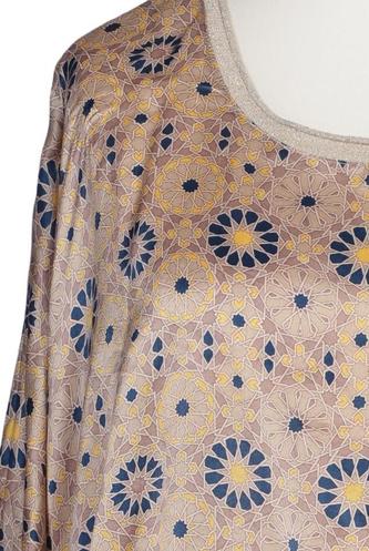 | Details | Satin, Langarm, Rundhals, verschlusslos, Floral |
