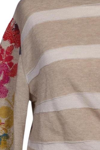 | Details | Grobstrick, Langarm, Rundhals, Floral, Streifen |