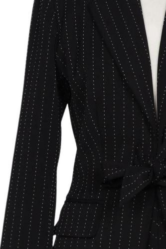 | Details | Langarm, Bindegürtel, Front Knopfleiste, Nadelstreifen |