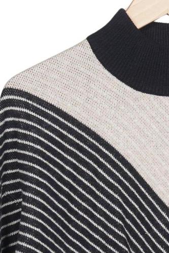 | Details | Grobstrick, Langarm, Rollkragen, Streifen |