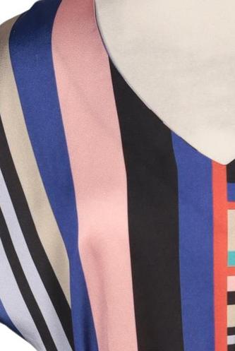 | Details | Satin, Kurzarm, Bindegürtel, V-Ausschnitt, verschlusslos, Streifen |