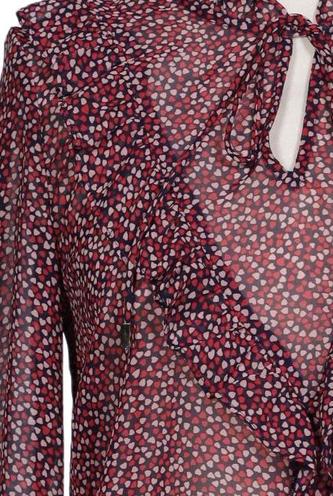 | Details | Rüschen, Chiffon, Langarm, V-Ausschnitt, verschlusslos, Floral |