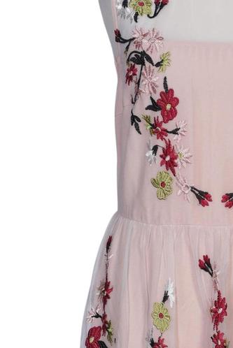 | Details | Stickerei, Tüll, ärmellos, Rundhals, Reißverschluss/Knöpfe hinten, Floral |