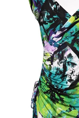 | Details | Jersey, Kurzarm, Wickeloptik, V-Ausschnitt, Floral |