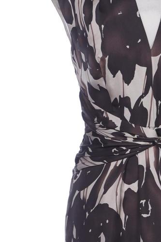 | Details | Satin, Kurzarm, V-Ausschnitt, Reißverschluss/Knöpfe hinten, Floral |