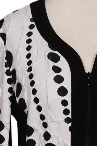 | Details | Grobstrick, Dreiviertelarm, V-Ausschnitt, Front Knopfleiste, Punkte |