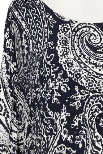 | Details | Dreiviertelarm, Rundhals, verschlusslos, Paisley |
