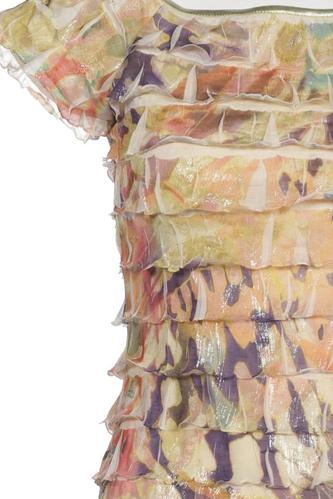 | Details | Rüschen, Tüll, Kurzarm, Rundhals, Floral |
