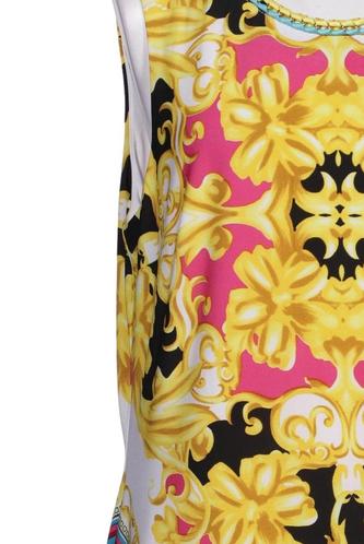 | Details | metallic, ärmellos, Rundhals, Reißverschluss/Knöpfe hinten, Floral |