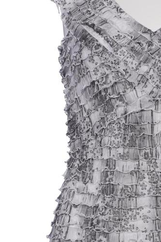 | Details | Rüschen, Tüll, ärmellos, V-Ausschnitt, Motivprint |