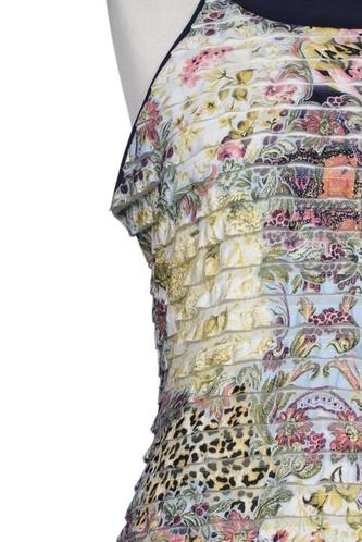 | Details | Jersey, ärmellos, Rundhals, Reißverschluss/Knöpfe hinten, Floral, Leopard |