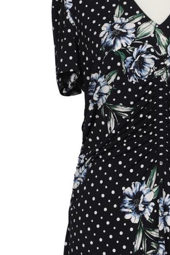 | Details | Jersey, Kurzarm, V-Ausschnitt, Floral, Punkte |
