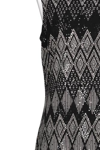 | Details | Jersey, ärmellos, Rundhals, Reißverschluss/Knöpfe hinten, Rauten |