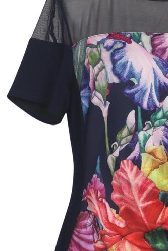 | Details | Tüll, Kurzarm, Rundhals, Reißverschluss/Knöpfe hinten, Floral |