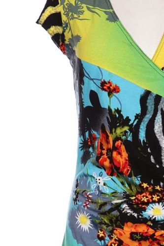 | Details | Jersey, Kurzarm, V-Ausschnitt, Floral, Zebra |