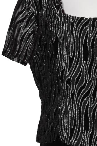 | Details | Samt, metallic, Kurzarm, Rundhals, Reißverschluss/Knöpfe hinten, Zebra |
