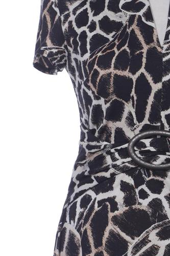 | Details | Jersey, Kurzarm, V-Ausschnitt, Reißverschluss/Knöpfe hinten, Leopard |