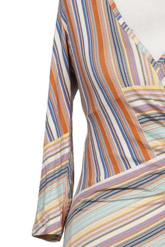 | Details | Jersey, Dreiviertelarm, Wickeloptik, V-Ausschnitt, Streifen |