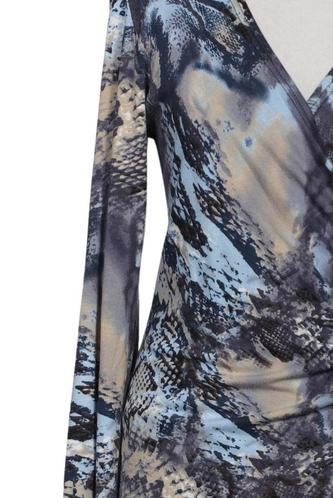 | Details | Jersey, Langarm, Wickeloptik, V-Ausschnitt, Motivprint |