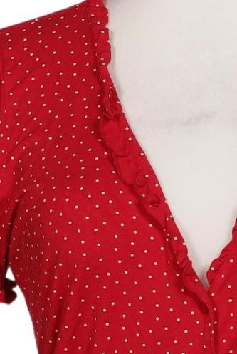 | Details | Jersey, Rüschen, Kurzarm, Front Knopfleiste, Punkte |