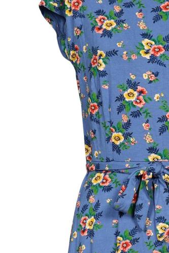 | Details | Jersey, Kurzarm, Bindegürtel, V-Ausschnitt, Floral |