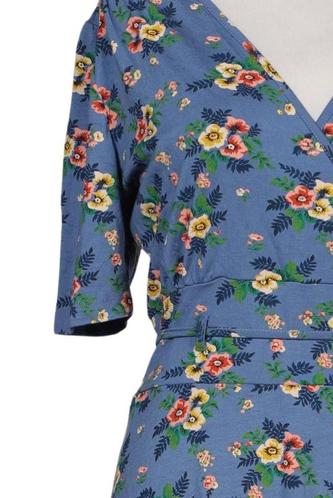 | Details | Kurzarm, Bindegürtel, Wickeloptik, V-Ausschnitt, Floral |
