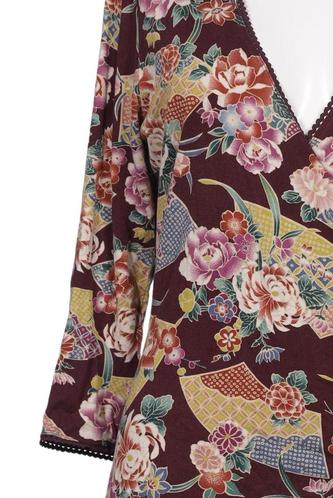 | Details | Jersey, Dreiviertelarm, Wickeloptik, V-Ausschnitt, Floral |