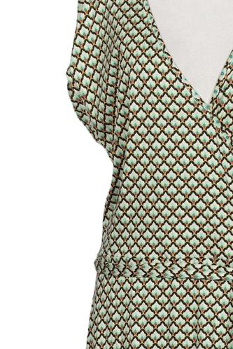 | Details | Jersey, Kurzarm, Bindegürtel, V-Ausschnitt, Gummizug/Tunnelzug, Motivprint |